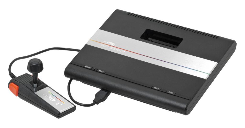 Dal punto di vista tecnico, la console utilizzava il chip grafico MARIA, capace di gestire un numero maggiore di colori e sprite rispetto alle console Atari precedenti, permettendo conversioni arcade più fedeli. Il design era sobrio e moderno per l’epoca, accompagnato da controller digitali con due pulsanti d’azione, più avanzati rispetto al classico joystick Atari.