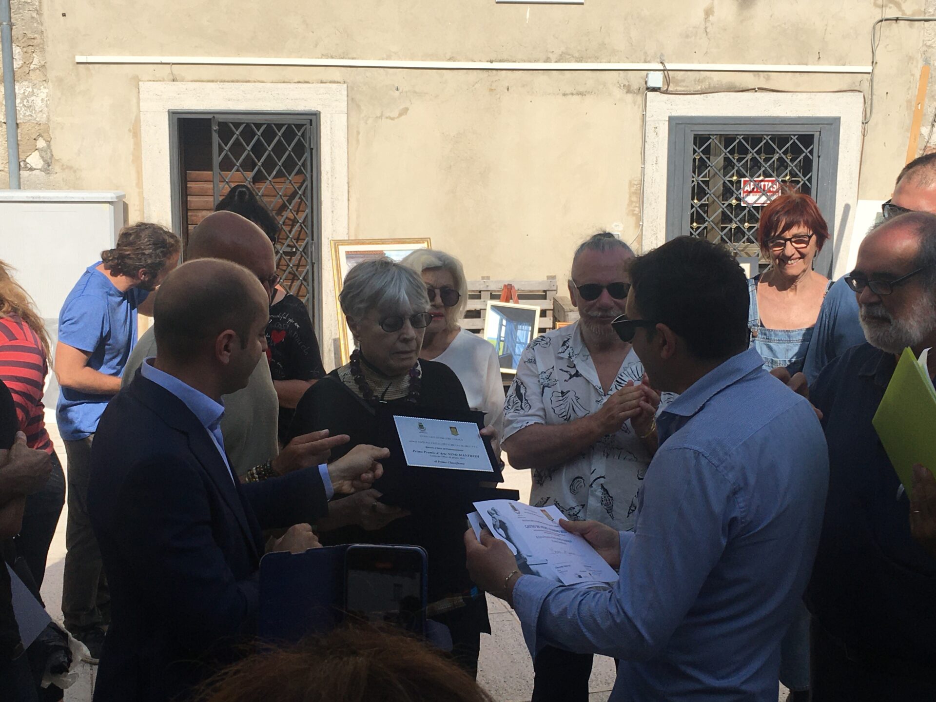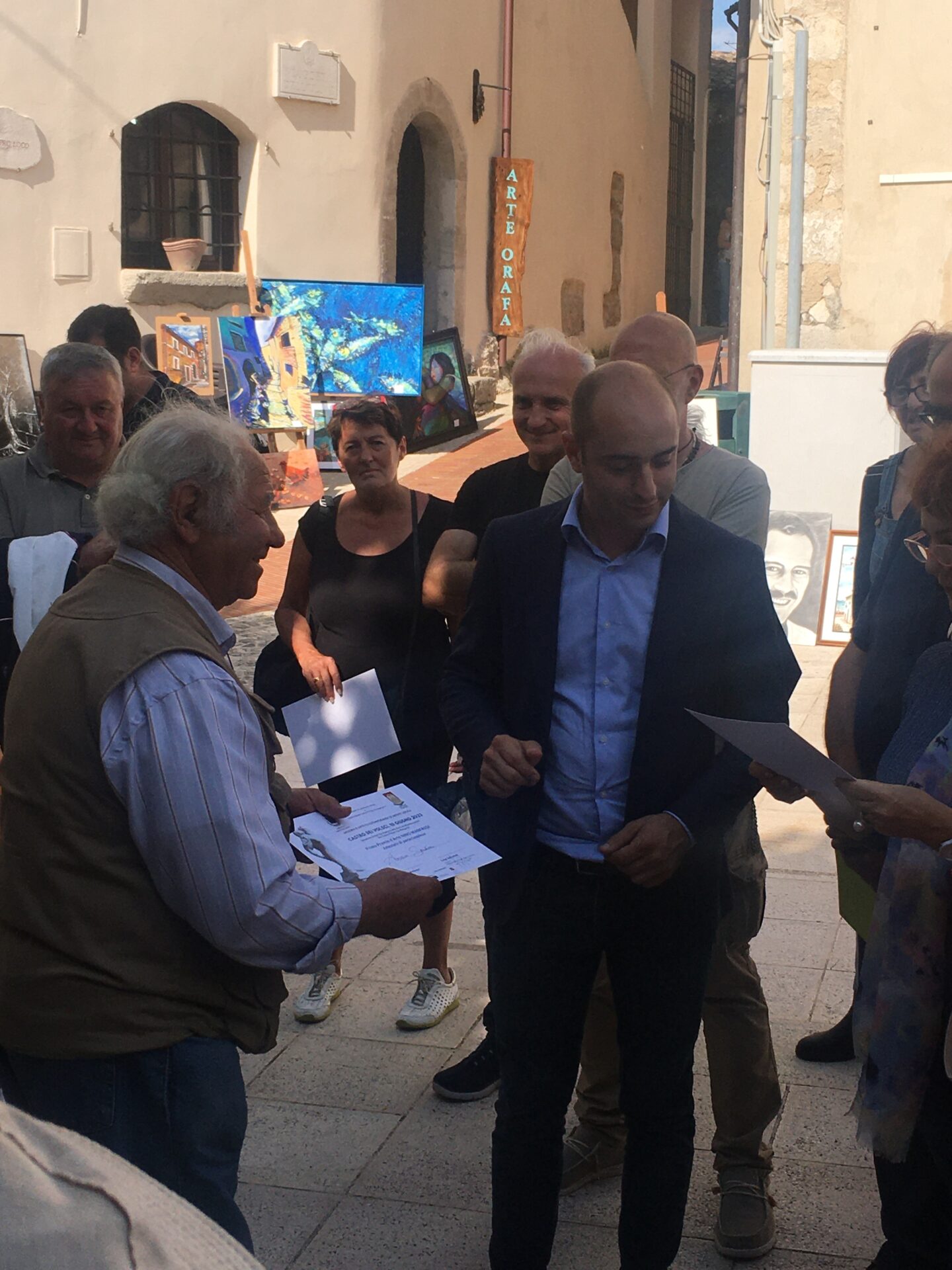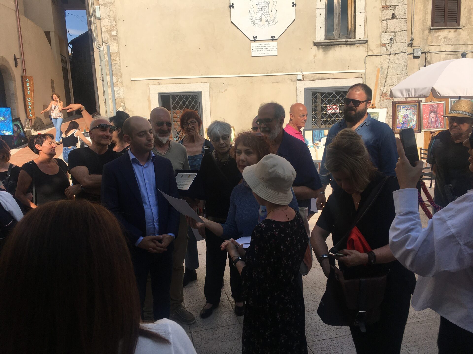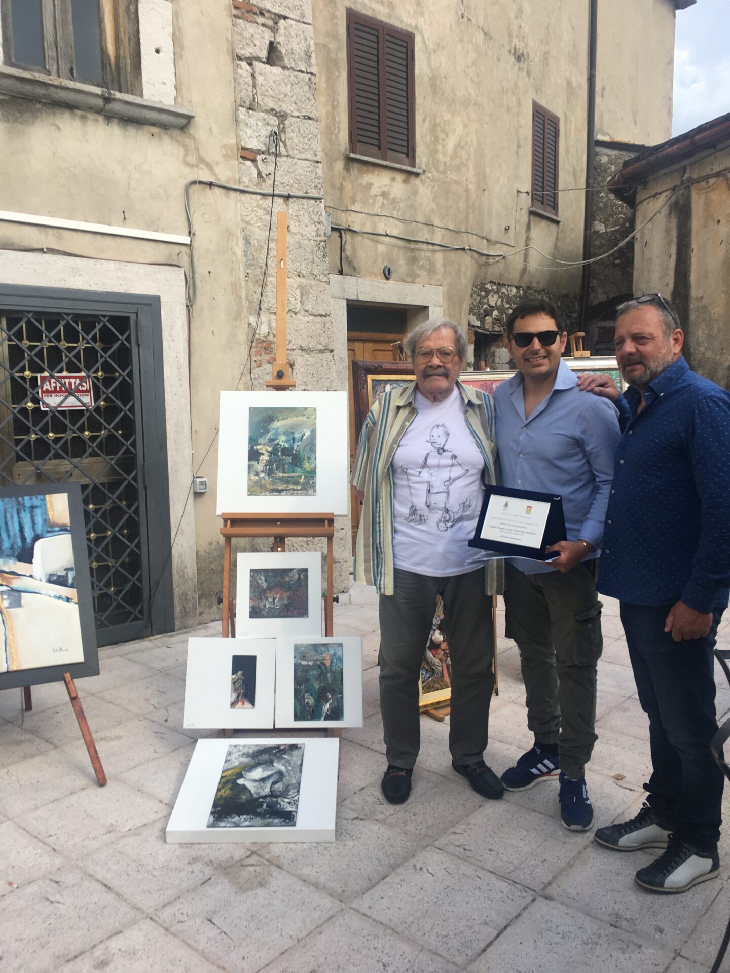 Il Presidente ha consegnato una targa per il riconoscimento della carica onorifica di Socio Onorario dei Cento Pittori: al Sindaco, all’assessore delegato alla cultura Luca Marzella e a Luca Manfredi, figlio del noto attore.