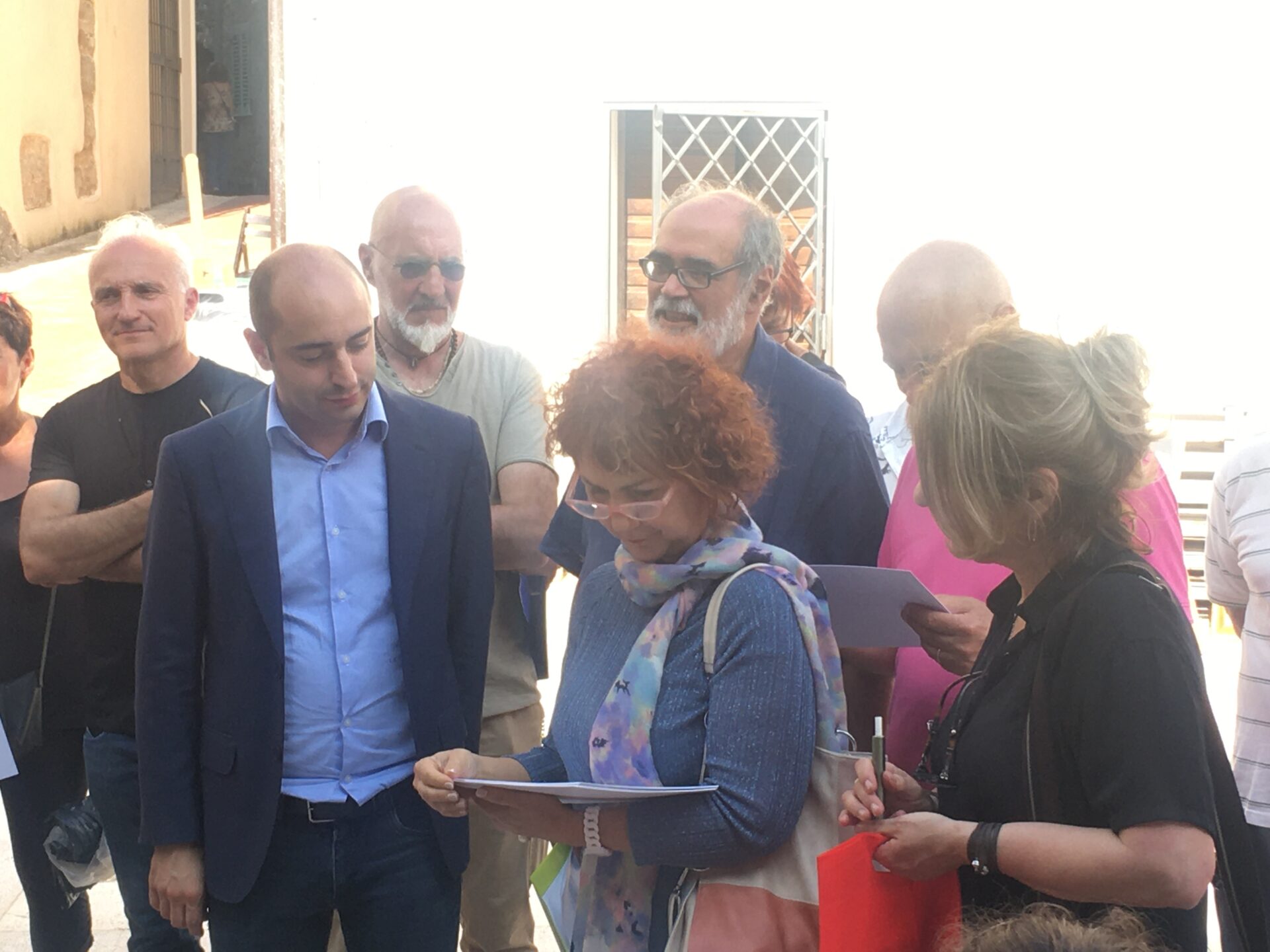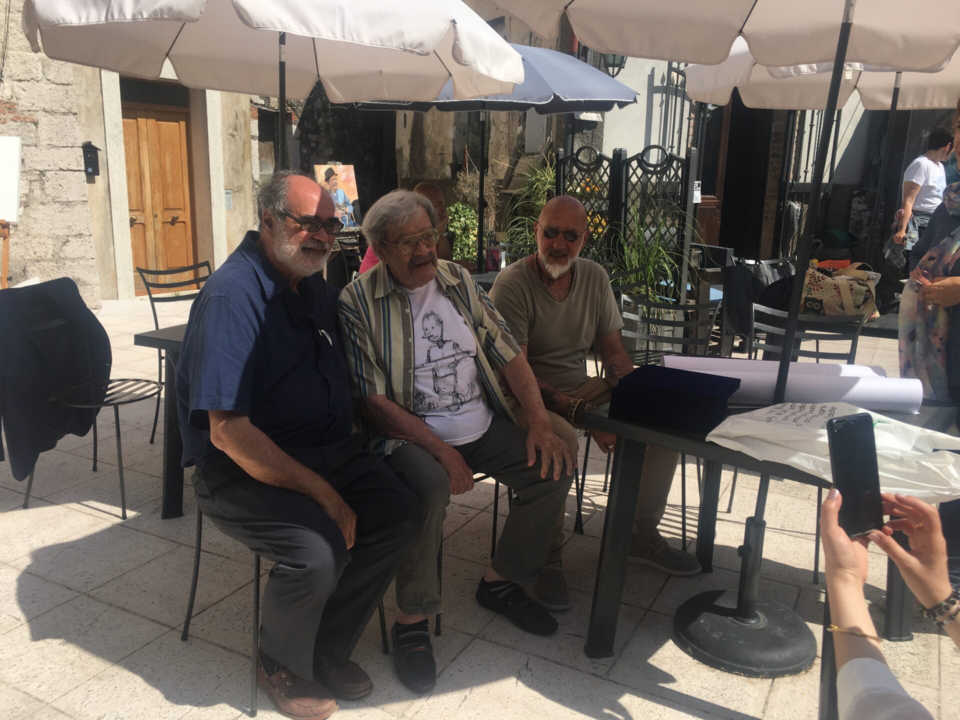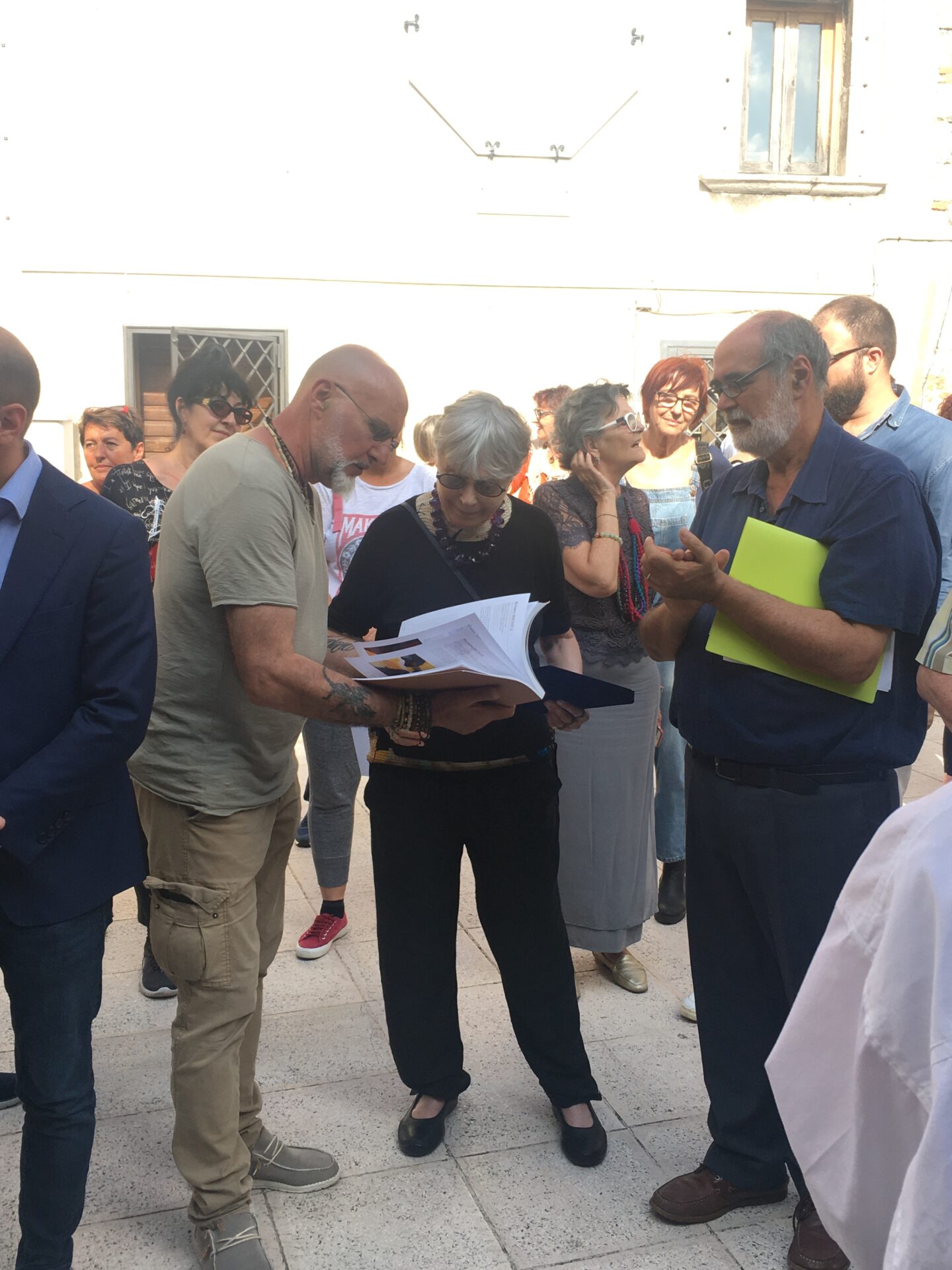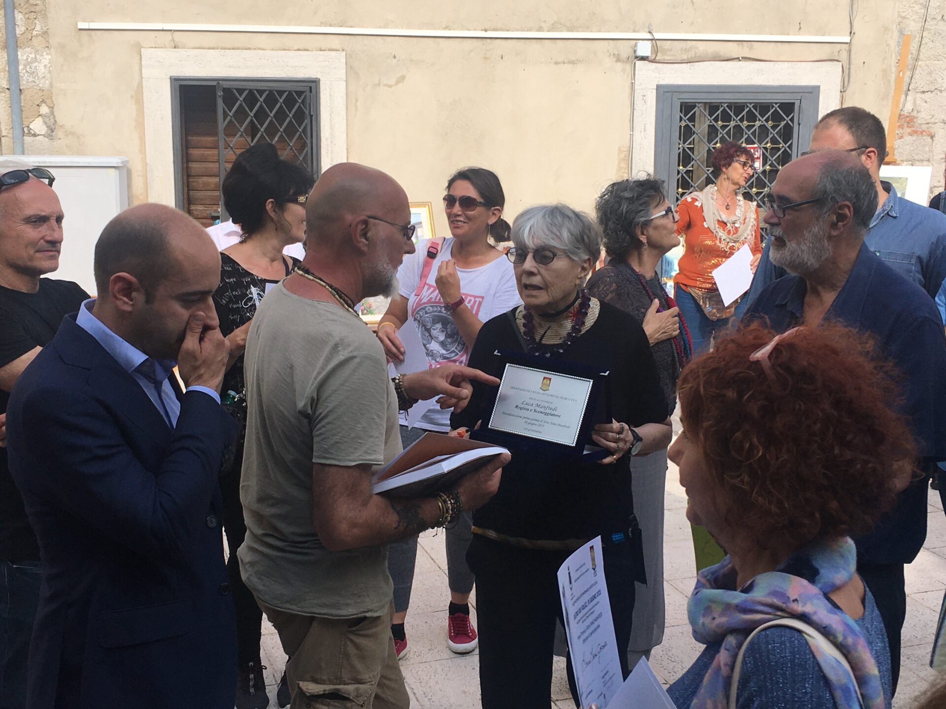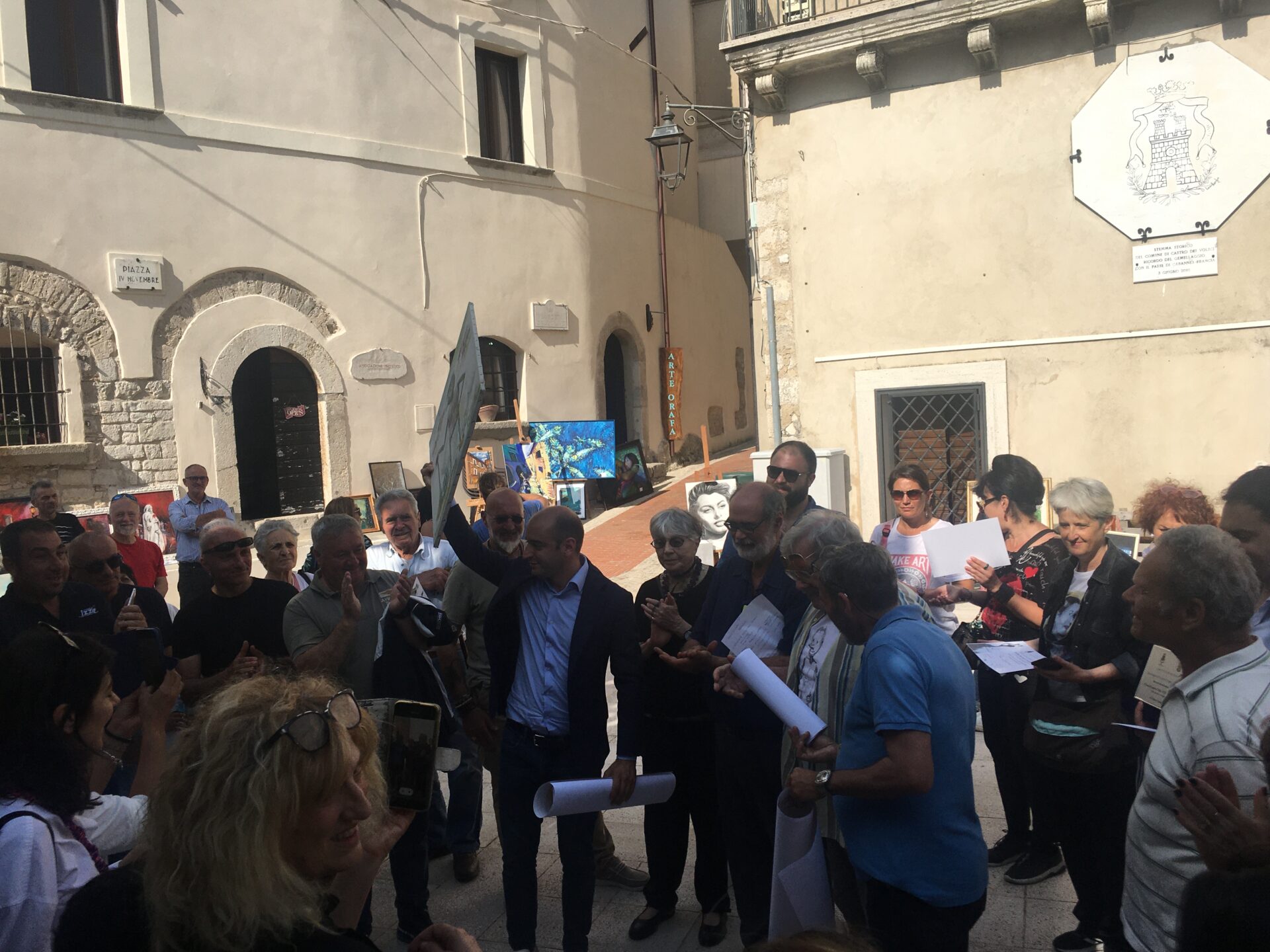 Il Presidente ha consegnato una targa per il riconoscimento della carica onorifica di Socio Onorario dei Cento Pittori: al Sindaco, all’assessore delegato alla cultura Luca Marzella e a Luca Manfredi, figlio del noto attore.