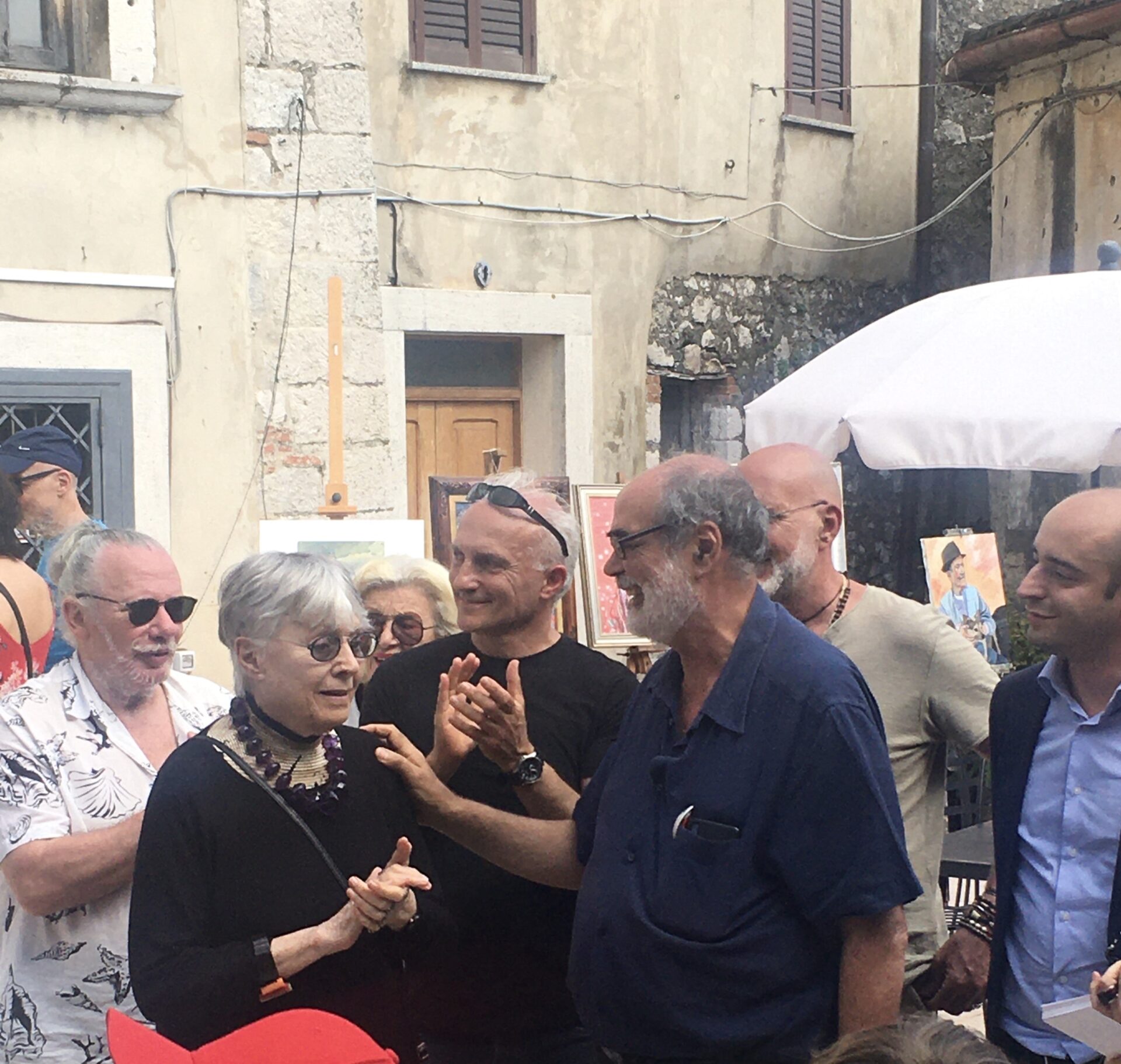 Sindaco Leonardo Ambrosi, Luigi Salvatori, Presidente Cento Pittori via Margutta, Antonio Servillo Vicepresidente Cento Pittori via Margutta, Erminia Ferrari moglie di Nino Manfredi, Tiziana Todi, titolare della Galleria Vittori di via Margutta, Mauro Rosati, titolare della Galleria Rosati Arte, il Concittadino Marco Caracci, socio onorario dei Cento Pittori via Margutta.