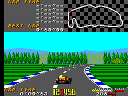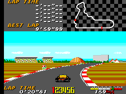 Dal punto di vista tecnico, il titolo sfrutta al meglio l’hardware del Master System con una grafica fluida, dettagli chiari delle monoposto e un senso di velocità convincente per una console 8-bit. Anche il comparto sonoro contribuisce all’immersione con effetti realistici del motore e delle frenate.