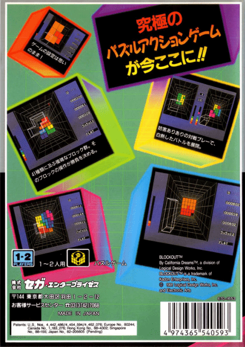 Blockout (ブロックアウト) per Sega Mega Drive è un originale gioco puzzle che reinventa il classico concetto di incastro dei blocchi in una sorprendente dimensione tridimensionale.