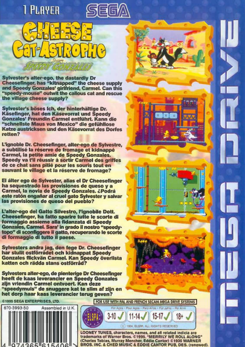 Cheese Cat-Astrophe Starring Speedy Gonzales è un colorato gioco di piattaforme sviluppato da Sunsoft e pubblicato per Sega Mega Drive, con protagonista il celebre topo velocissimo dei cartoni animati Speedy Gonzales.