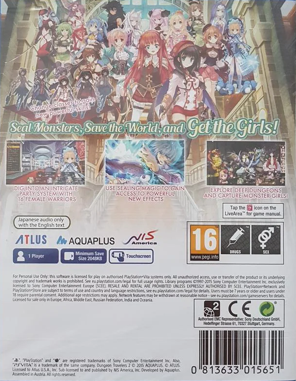 Dungeon Travelers 2: The Royal Library & The Monster Seal è un dungeon crawler in stile RPG giapponese sviluppato da AquaPlus, caratterizzato da un mix di esplorazione, combattimenti strategici e una forte componente narrativa.