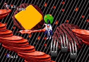 Grazie alla grafica coloratissima, alle animazioni fluide in stile cartone animato e all’umorismo fuori dagli schemi, Earthworm Jim 2 è considerato uno dei titoli più originali e creativi del Sega Mega Drive.