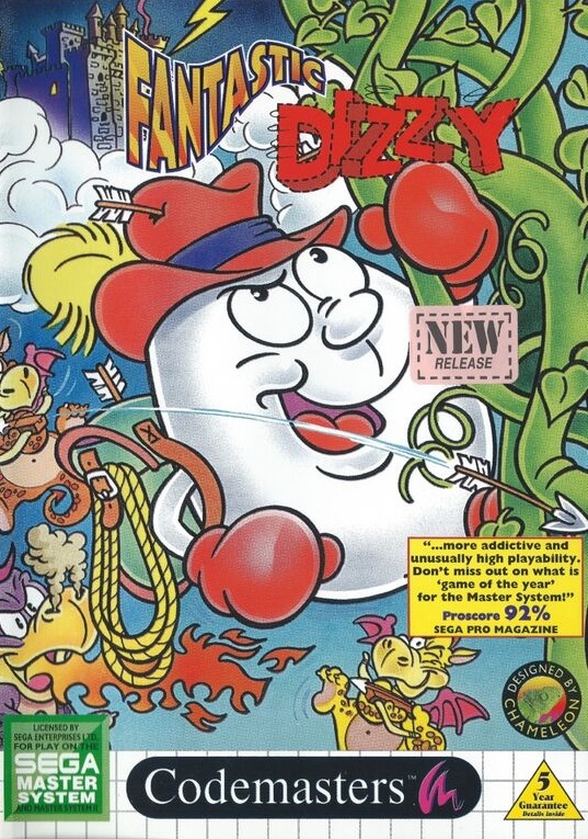 Fantastic Dizzy è un colorato gioco d’avventura e puzzle sviluppato da The Oliver Twins e pubblicato da Codemasters per la console Sega Master System. Il protagonista è Dizzy, il simpatico ovetto avventuriero che vive nel fantastico mondo degli Yolkfolk.