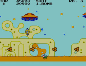 Fantasy Zone è un frenetico shoot ’em up sviluppato e pubblicato da Sega per la console Sega Master System. Il protagonista è Opa-Opa, una simpatica navicella senziente che deve salvare il proprio pianeta dall’invasione di forze nemiche.