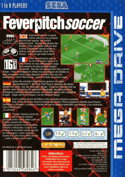 Grazie al suo stile colorato, all’atmosfera leggera e alla giocabilità arcade, Fever Pitch Soccer offre un’esperienza calcistica diversa dai simulatori più realistici, ideale per partite rapide e sfide tra amici su Sega Mega Drive.