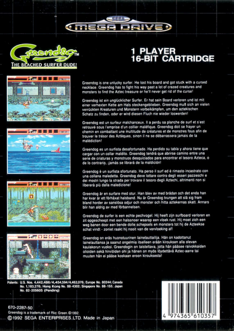 Greendog: The Beached Surfer Dude! è un gioco platform sviluppato e pubblicato da Sega per Sega Mega Drive abbastanza difficile da portare a termine.