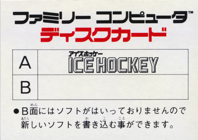 Ice Hockey è un classico gioco sportivo sviluppato da Nintendo per Famicom Disk System, versione su disco del celebre titolo dedicato all’hockey su ghiaccio.