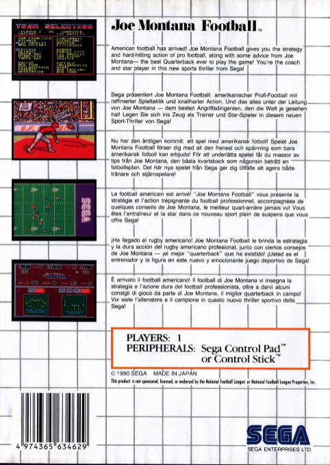 Joe Montana Football è un gioco sportivo dedicato al football americano pubblicato per la Sega Master System e ispirato al leggendario quarterback Joe Montana, una delle icone più celebri della National Football League.