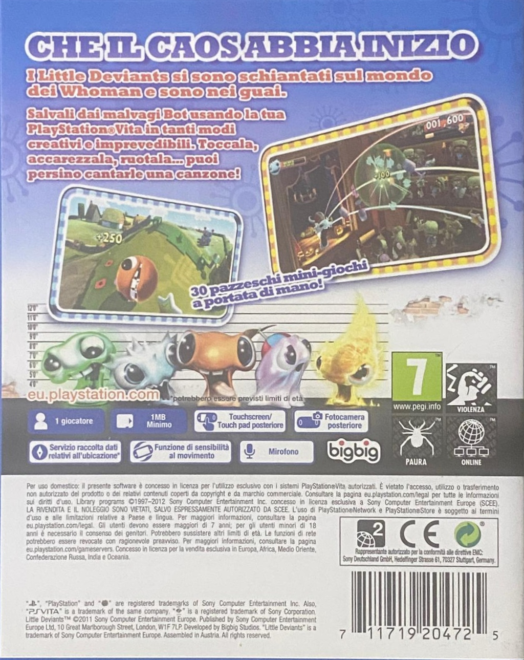 Little Deviants è una raccolta di minigiochi colorata e divertente sviluppata per PlayStation Vita, pensata per mostrare al meglio tutte le funzionalità innovative della console.