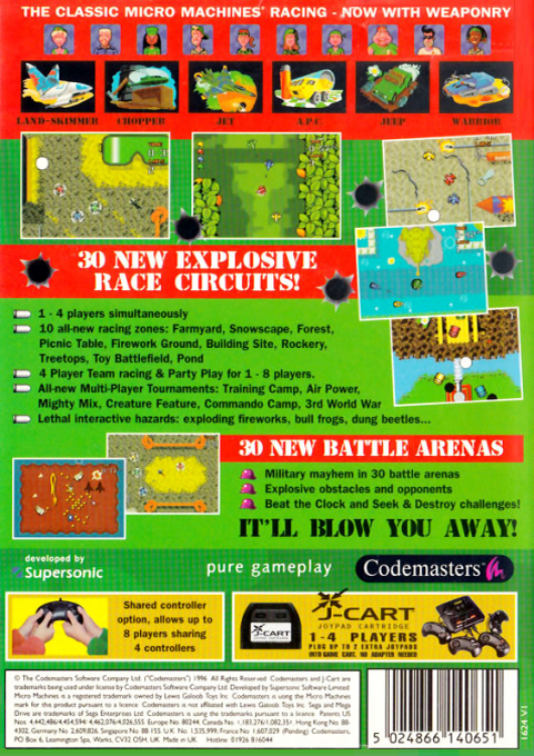 Micro Machines Military è uno spin-off della celebre serie Micro Machines, sviluppato e pubblicato da Codemasters per Sega Mega Drive.
