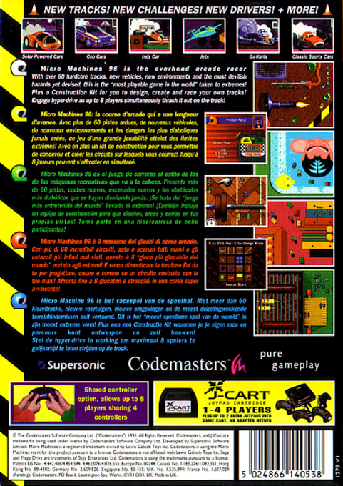 Grazie alla sua grande varietà di contenuti, alla giocabilità frenetica e alle sfide multiplayer, Micro Machines: Turbo Tournament ’96 rappresenta uno dei capitoli più completi e divertenti della serie su Sega Mega Drive.