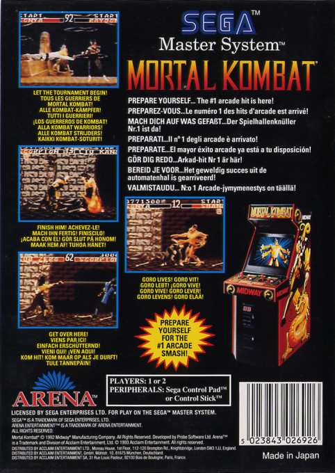 Mortal Kombat è uno dei picchiaduro più famosi della storia dei videogiochi, pubblicato anche per Sega Master System in una versione adattata alle capacità della console.
