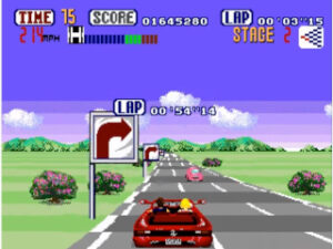 Out Run è uno dei più celebri giochi di guida arcade sviluppato da Sega e successivamente adattato per Sega Mega Drive. Nel gioco il giocatore è al volante di una spettacolare Ferrari Testarossa decappottabile e deve attraversare una serie di scenari colorati e variopinti prima che il tempo scada. Le strade si snodano tra spiagge, deserti, montagne e città, offrendo panorami sempre diversi durante la corsa.