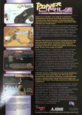 Power Drive Rally è un gioco di corse rally pubblicato nel 1995 per Atari Jaguar dalla Atari Corporation. Il titolo propone gare fuoristrada ad alta velocità su tracciati ambientati in diverse parti del mondo, offrendo un’esperienza di guida dinamica e accessibile con un forte taglio arcade.