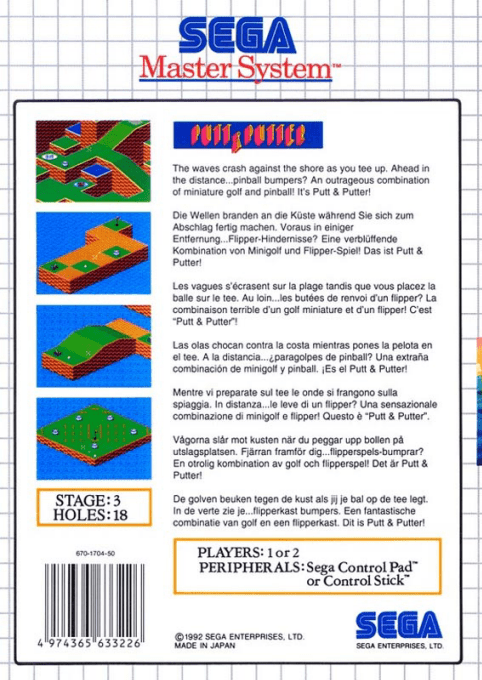 Putt & Putter è un divertente gioco di mini golf pubblicato per Sega Master System, che propone un’esperienza sportiva semplice ma ricca di sfide e percorsi originali.
