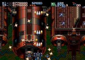 Il gameplay è rapido e intenso, tipico degli shoot ’em up: si affrontano ondate di nemici, si raccolgono potenziamenti e si affrontano boss spettacolari che richiedono abilità e memoria per essere sconfitti. Il sistema di armi è vario e permette di adattare lo stile di gioco alle diverse situazioni.
