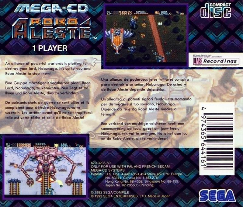 Robo Aleste per Sega Mega-CD è uno sparatutto a scorrimento verticale sviluppato da Compile, appartenente alla celebre serie Aleste. Il gioco si distingue per la sua originale ambientazione steampunk, che fonde tecnologia avanzata e Giappone feudale.