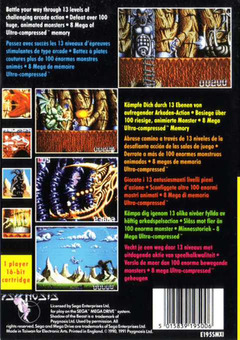 Shadow of the Beast è un oscuro gioco d’azione e piattaforme sviluppato da Reflections Interactive e pubblicato da Psygnosis per Sega Mega Drive. Il gioco racconta la tragica storia di Aarbron, un uomo trasformato in una potente creatura demoniaca dal malvagio signore oscuro Maletoth. Dopo aver scoperto la verità sul suo passato, Aarbron intraprende una missione di vendetta contro il suo creatore.