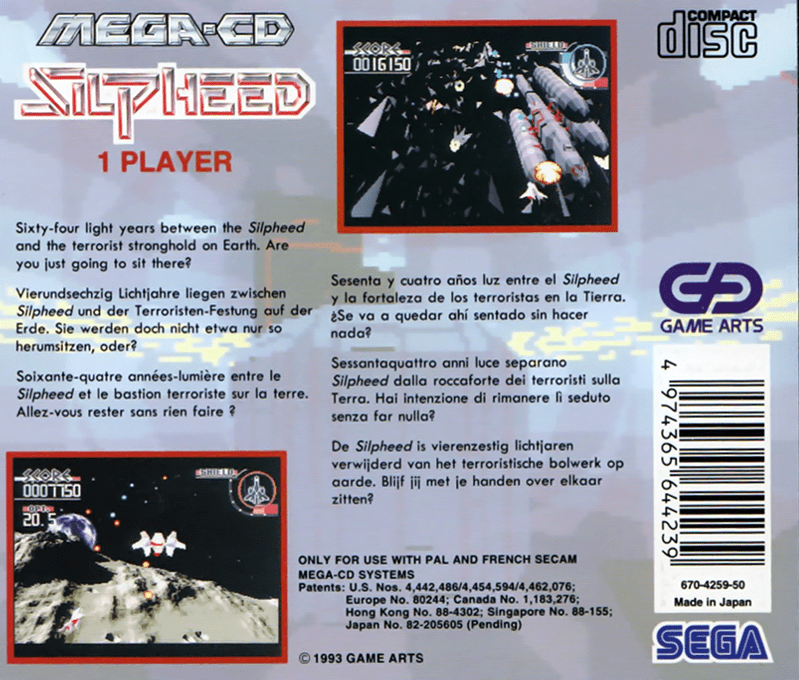 Silpheed (プロ野球スーパーリーグCD) per Sega Mega-CD è uno spettacolare shoot ’em up a scorrimento sviluppato da Game Arts, noto per essere uno dei titoli tecnicamente più impressionanti della piattaforma.