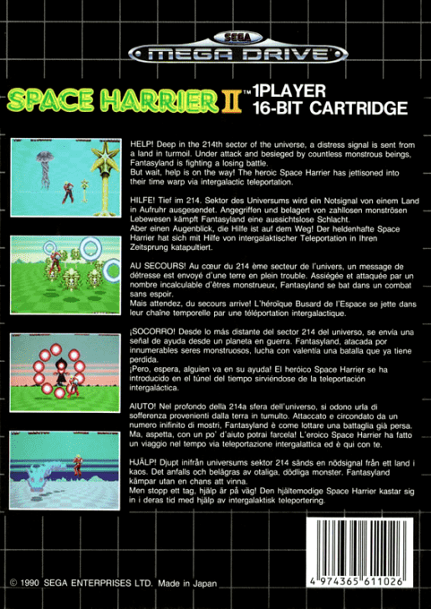 Space Harrier II è uno sparatutto arcade sviluppato da Sega e pubblicato tra i primi titoli disponibili per Sega Mega Drive. Il gioco mette il giocatore nei panni di Space Harrier, un guerriero volante equipaggiato con un potente cannone a energia, impegnato a difendere la galassia da creature mostruose e macchine nemiche provenienti da mondi alieni.