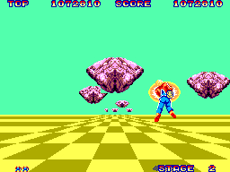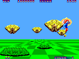 Space Harrier è un classico gioco d’azione e sparatutto a scorrimento pseudo-3D arrivato anche su Sega Master System, noto per la sua grafica colorata e l’azione frenetica.