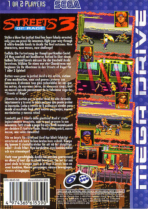 Grazie al suo gameplay evoluto, alla maggiore varietà di livelli e alle innovazioni introdotte nella serie, Streets of Rage 3 rappresenta la conclusione della trilogia classica su Sega Mega Drive, offrendo un’esperienza d’azione veloce e impegnativa.