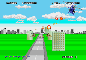 Il gameplay alterna sezioni con visuale in terza persona, in cui l’elicottero avanza verso lo schermo schivando proiettili e distruggendo nemici, a momenti con visuale dall’alto che richiedono precisione nel pilotaggio e nell’uso delle armi.