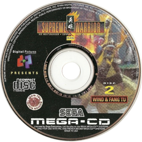 Supreme Warrior per Sega Mega-CD è un picchiaduro interattivo basato su sequenze in full motion video (FMV), sviluppato da Digital Pictures. Il gioco si distingue per il suo approccio cinematografico, utilizzando attori reali e coreografie di arti marziali per creare un’esperienza immersiva.