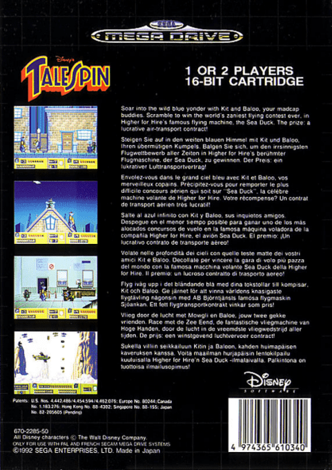 TaleSpin è un platform a scorrimento laterale sviluppato da Sega per Sega Mega Drive, basato sulla popolare serie animata Disney TaleSpin.