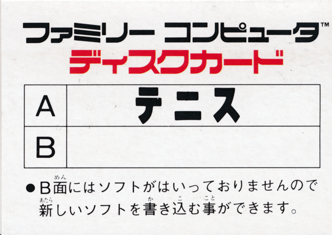 Tennis per Nintendo Famicom Disk System è uno dei primi titoli sportivi dedicati al tennis su console Nintendo, una versione evoluta del classico già visto su Famicom/NES. Semplice nell’aspetto ma estremamente divertente, il gioco offre partite rapide e dinamiche, ideali sia per sessioni brevi che per sfide più competitive.